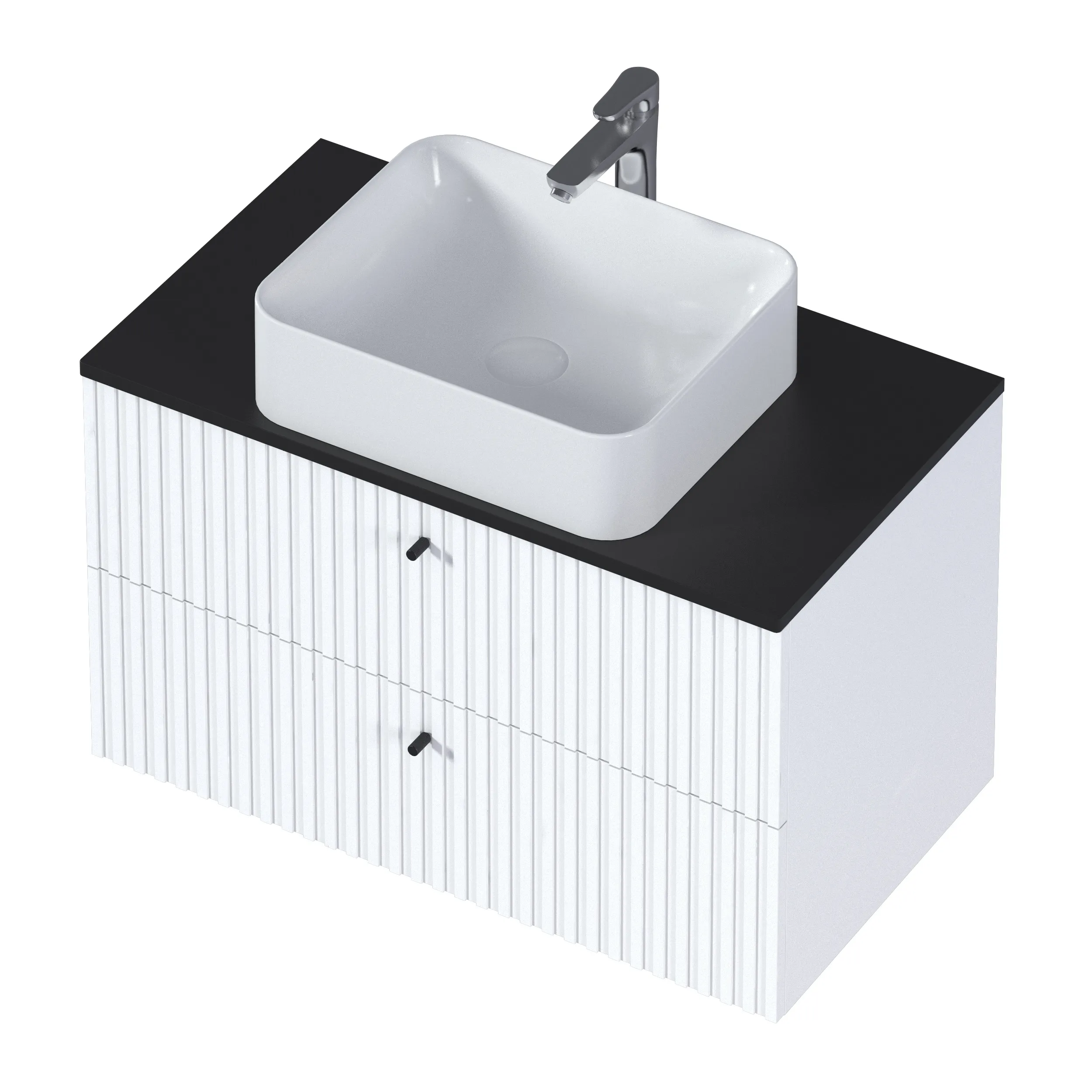 Тумба Desire – изящное решение для интерьера ванной комнаты. Рельефный фасад создает ритмичную игру света и теней. Черные ручки-кнопки контрастируют с белым фасадом и подчеркивают её современный дизайн.