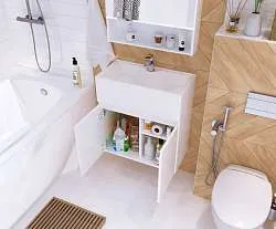 20 220 Р Тумба с раковиной Mira 60П 2д. Белый глянец