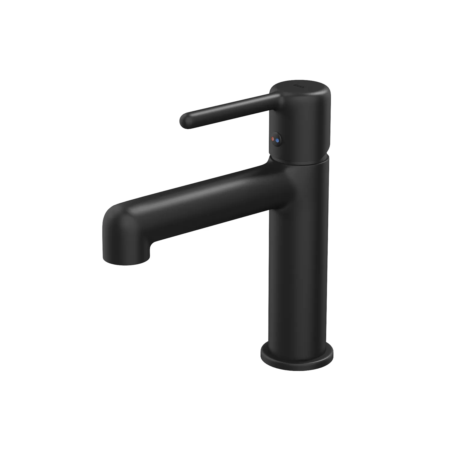 Стильный смеситель для умывальника, где удачно сочетает актуальный современный дизайн и популярный черный цвет. Тонкая удлиненная ручка добавляет смесителю изящества и комфорт в управлении. Расстояние между ручкой и изливом увеличено для большего удобства.