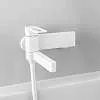 Смеситель для ванны Slide в актуальном матовом белом цвете со складным изливом — стильное функциональное решение без лишних деталей: подойдет и для ванны, и для душевой кабины. Отверстие-петля на ручке выполняет декоративную и при этом практичную роль — ее легко захватить даже намыленной рукой и отрегулировать напор или температуру. Без душевых аксессуаров в комплекте.