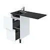 Тумба под раковину* Maid – элегантное решение "2-в-1", которое объединяет функциональность и стиль, позволяя гармонично разместить раковину и стиральную машину в ванной комнате. Белый цвет легко сочетается с другими цветами и стилями интерьера, предоставляя свободу в оформлении ванной комнаты. Акцентные опоры  черного цвета гармонично дополнят ваш выбор: строгая графитовая или нежная белая раковина – для создания неповторимого стиля ванной комнаты.