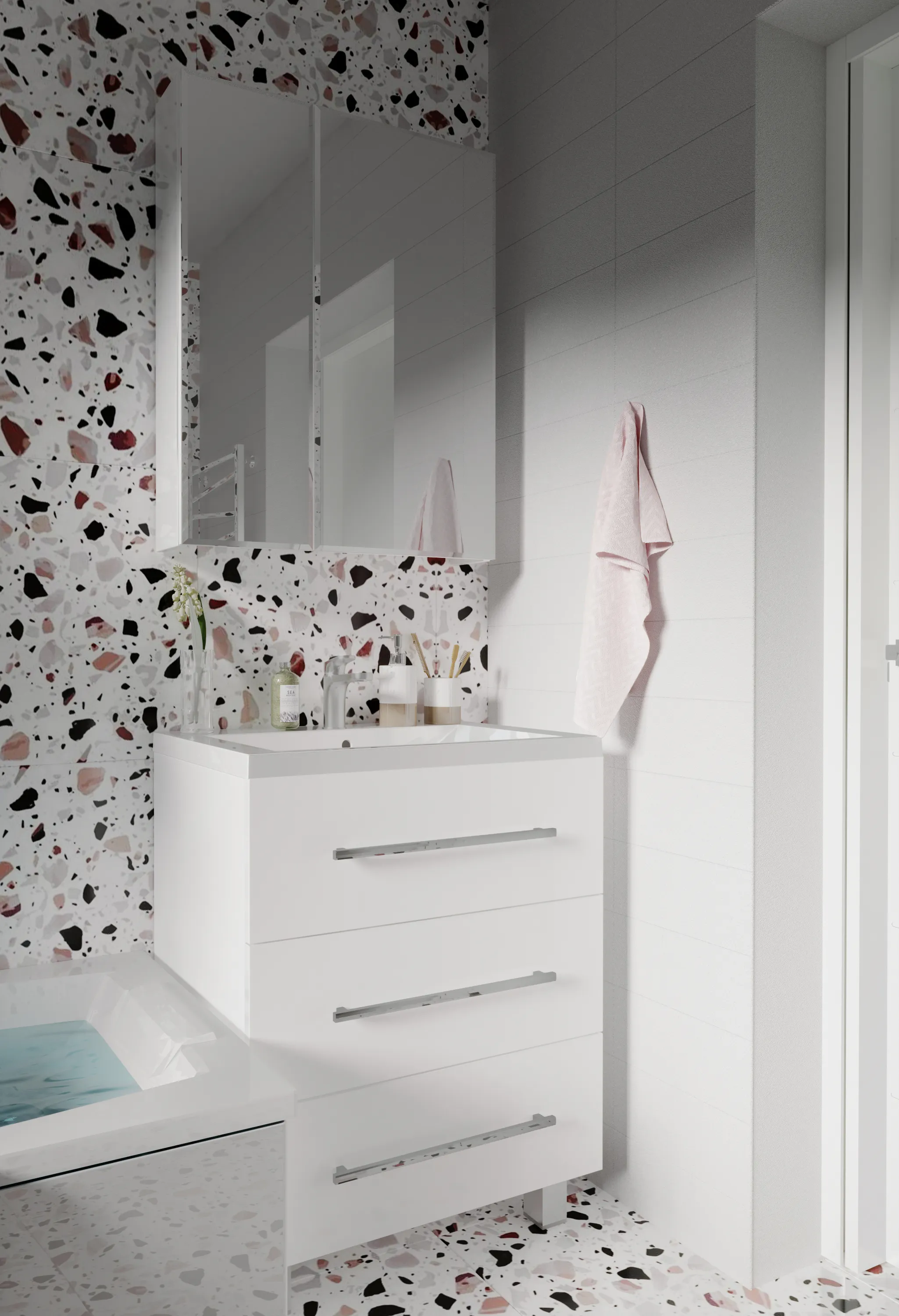 24 090 Р Тумба под раковину КОДА/Coda 75Н (750х887х471) 2я перламутр белый